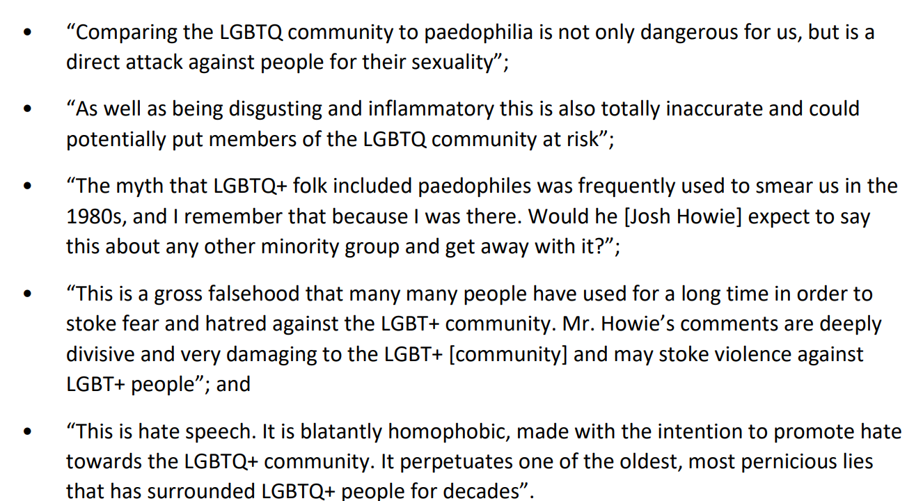 The comment “clearly had the potential to be highly offensive”, the regulator concluded, by “appearing to conflate or associate some sexualities and/or gender identities with paedophilia, particularly given how well established this is as a prejudicial trope against homosexual people”.